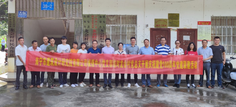 7月9日,南寧市建筑設計研究院有限公司城規中心黨支部聯合隆安縣退役軍人事務局黨支部、隆安縣布泉鄉龍會村黨總支部在布泉鄉龍會村開展慶祝建黨100周年黨建聯建活動。隆安縣布泉鄉鄉長方寧、副鄉長黃玉勤,城規中心黨支部書記黃炎佳、總經理韋波,隆安縣退役軍人事務局副局長李大安以及布泉鄉龍會村黨總支部黨員代表共計80余人參加本次活動。