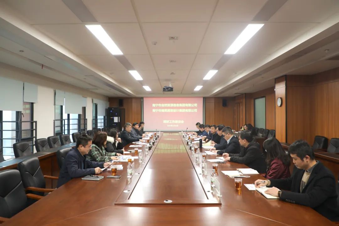 近日,南寧市自然資源信息集團有限公司黨委書記、董事長、總經理梁戰帶隊到我集團公司交流座談。集團黨委書記、董事長韋文學參加會議,集團總經理、副董事長馮江泉主持座談會。