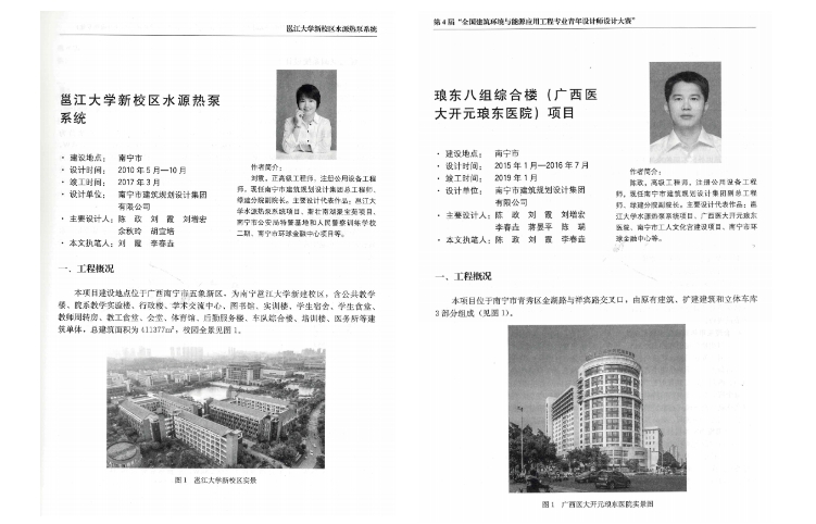 其中,集團(tuán)綠色建筑設(shè)計(jì)研究分院李春垚入選第2批中國勘察設(shè)計(jì)協(xié)會(huì)建筑環(huán)境與能源應(yīng)用專業(yè)青年人才庫人員名單。集團(tuán)設(shè)計(jì)項(xiàng)目“邕江大學(xué)新校區(qū)水源熱泵系統(tǒng)”和“瑯東八組綜合樓(廣西醫(yī)大開元瑯東醫(yī)院)”獲《全國勘察設(shè)計(jì)建筑環(huán)境與能源應(yīng)用工程專業(yè)優(yōu)秀工程3》收錄并出版發(fā)行。