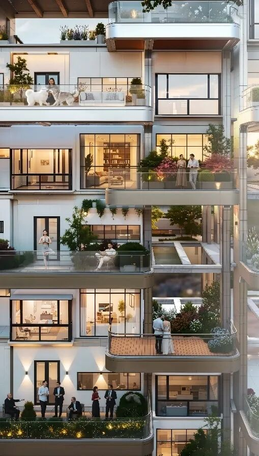 我們相信,好房子不僅關(guān)乎室內(nèi),更關(guān)乎社區(qū)。在標準層,我們設(shè)置了戶外共享花園。配合景觀螺旋梯貫通上下樓層,打破了傳統(tǒng)住宅樓層間的絕對封閉。鄰里間在這里可以實現(xiàn)“拜訪不入戶,串門不打擾”,在增加空間趣味性的同時,有效增進了鄰里感情,構(gòu)建和諧溫暖的社區(qū)氛圍。